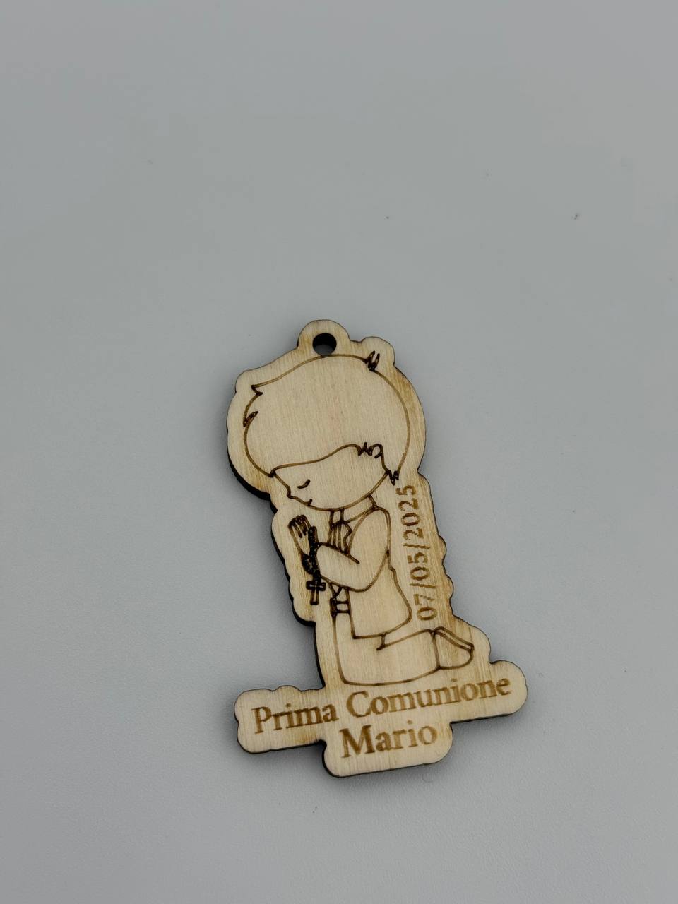 Dai un tocco in più con Bomboniera Comunione in Legno – Bambino o Bambina 37×61 mm | Ciondolo o Portachiavi per Prima Comunione