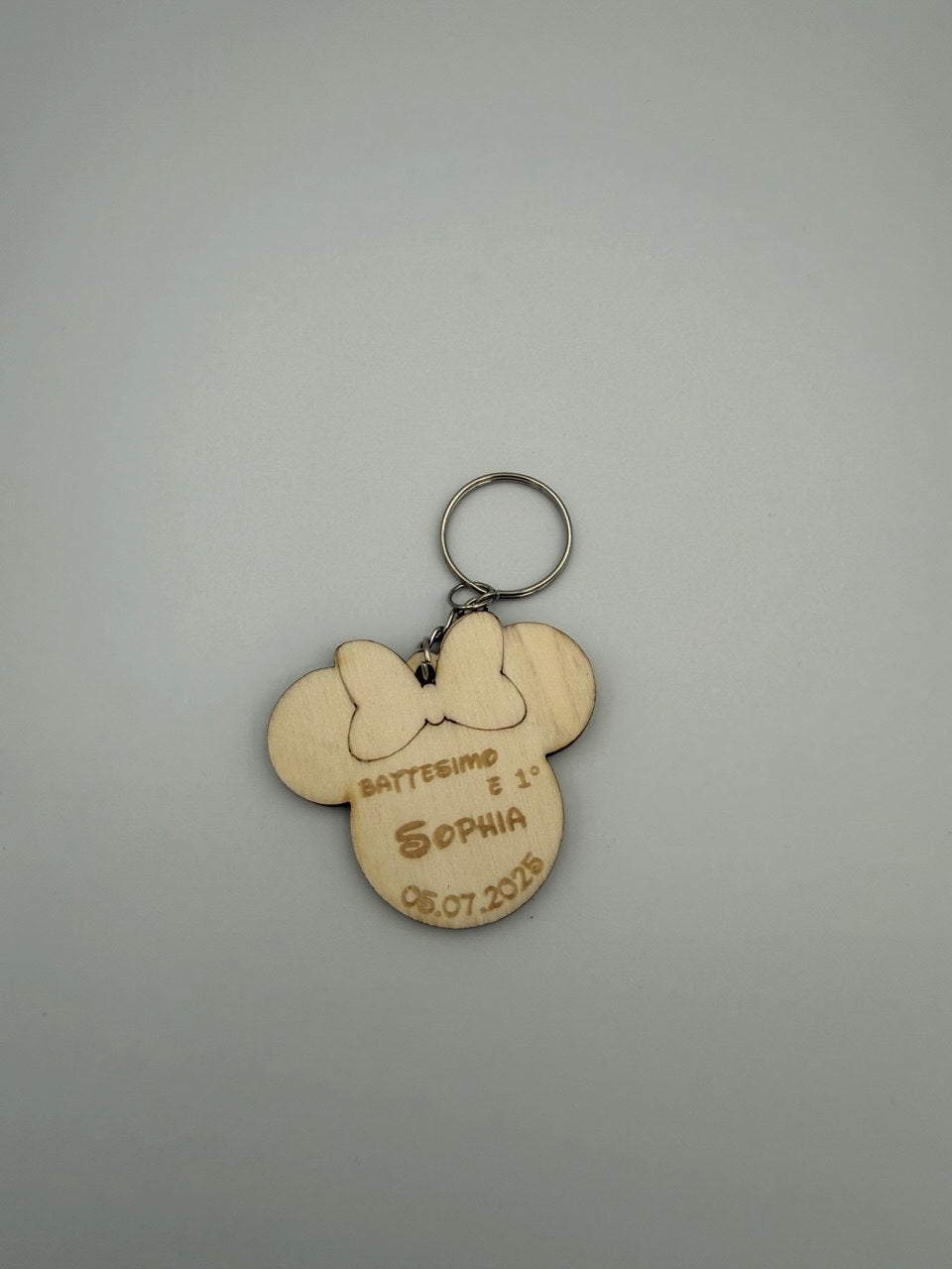 Portachiavi Bomboniera Battesimo – Testa Minnie in Legno (50 mm)