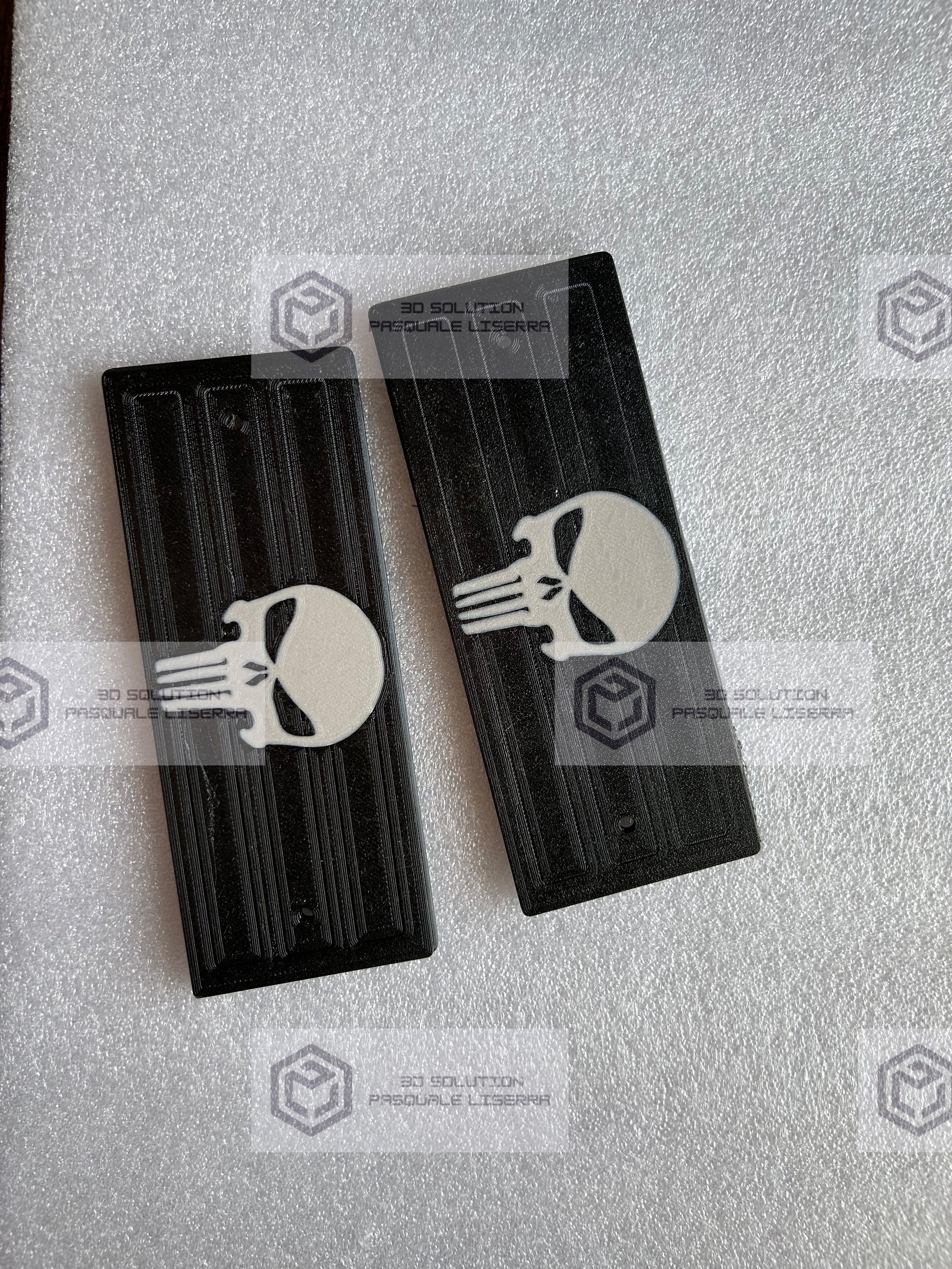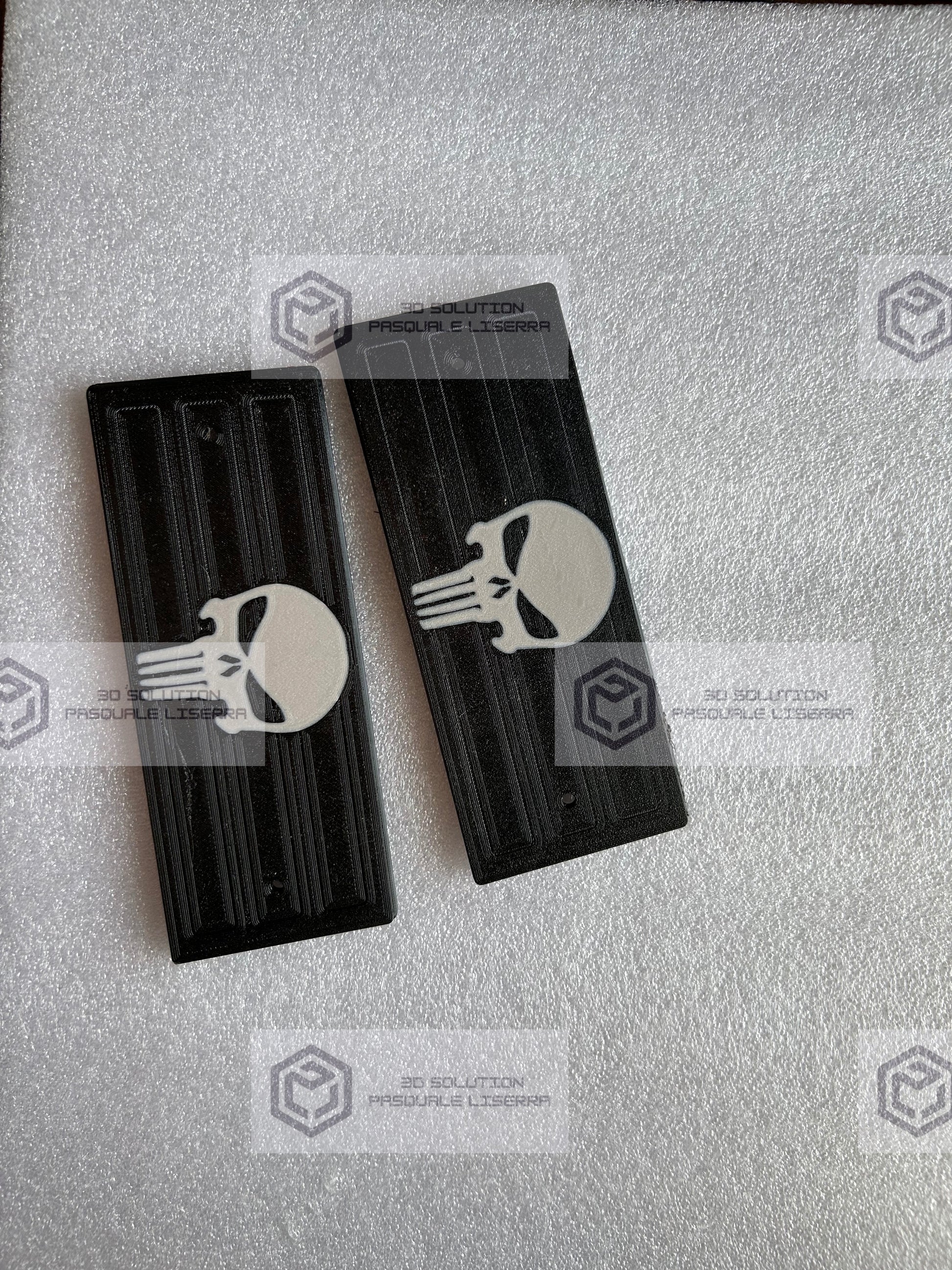 Coppia (2) di modanature laterali arco per Suzuki Samurai, caratterizzate dal logo "Punisher" per un look grintoso e personalizzato.