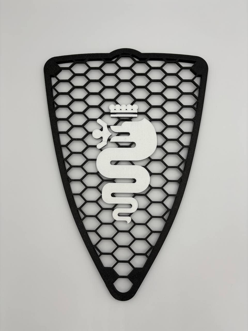 Griglia a nido d'ape con biscione per Alfa Romeo MiTo (2008-2015). Caratterizzata da un design sportivo e raffinato, ideale per valorizzare il look della tua vettura.
