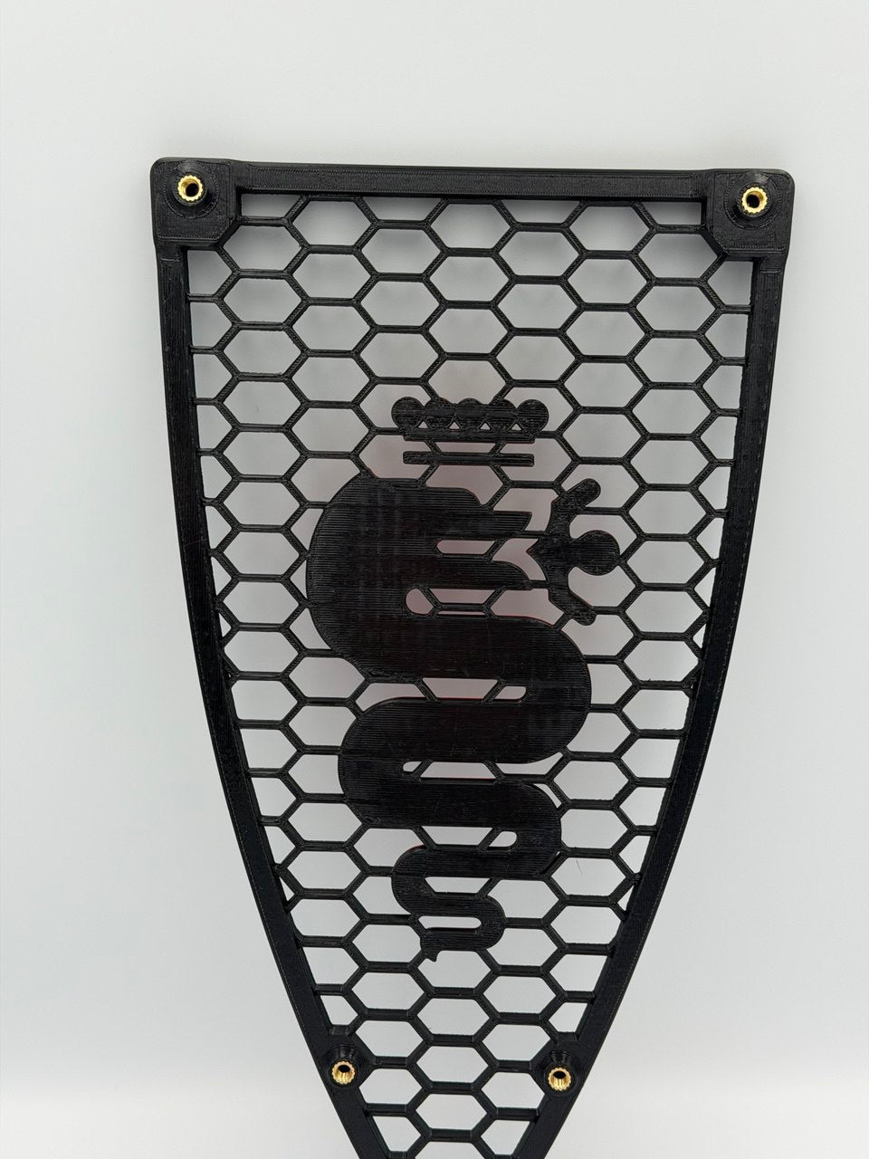 Griglia anteriore a nido d'ape con biscione per Alfa Romeo 147 2ª Serie (2004-2011), pensata per conferire un aspetto ancora più iconico e grintoso alla tua vettura.