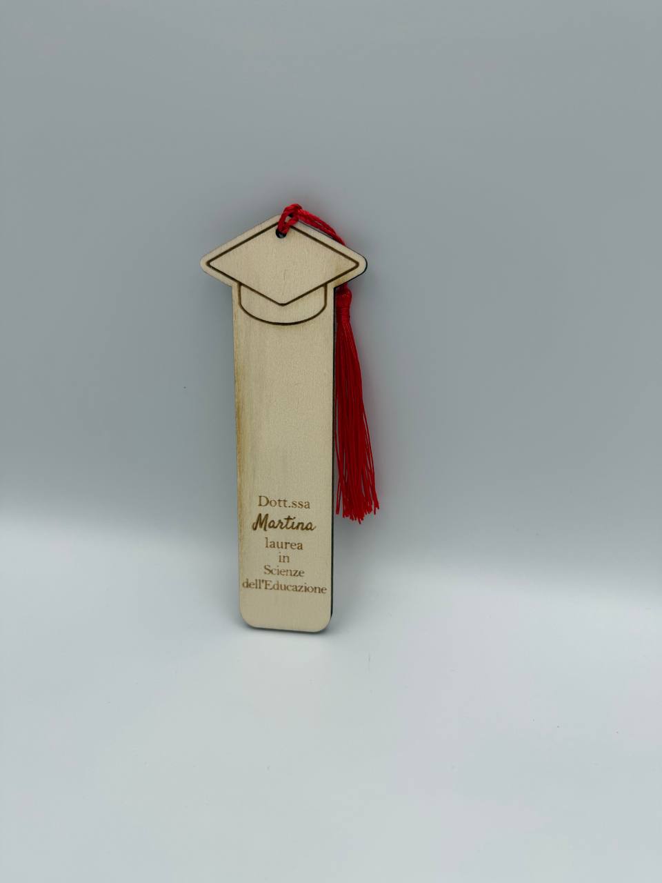 Raffinato segnalibro in legno naturale, perfetto come bomboniera o pensierino di laurea. Il design semplice e elegante lo rende ideale sia come ricordo personalizzato che come decorazione per bomboniere fai da te.