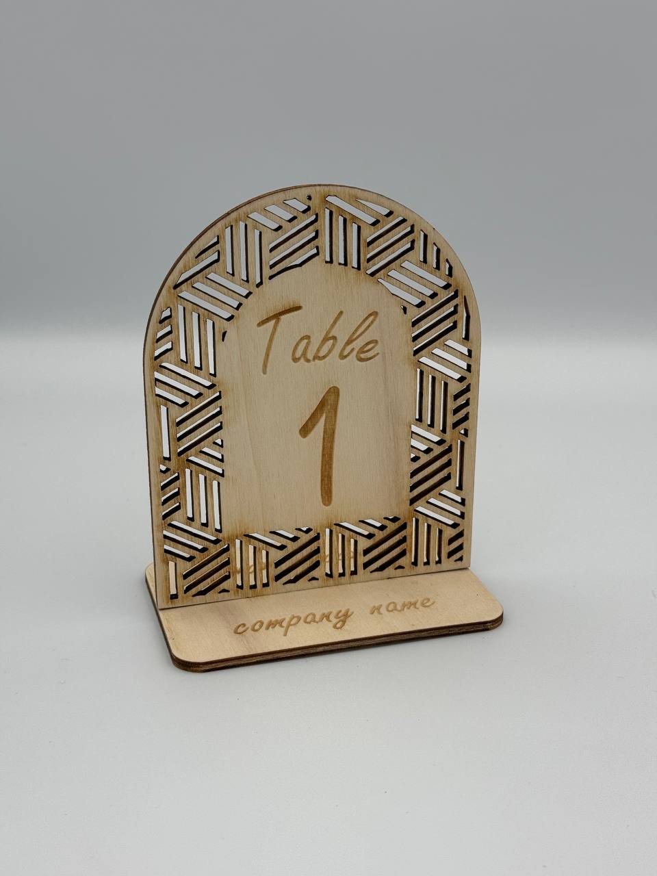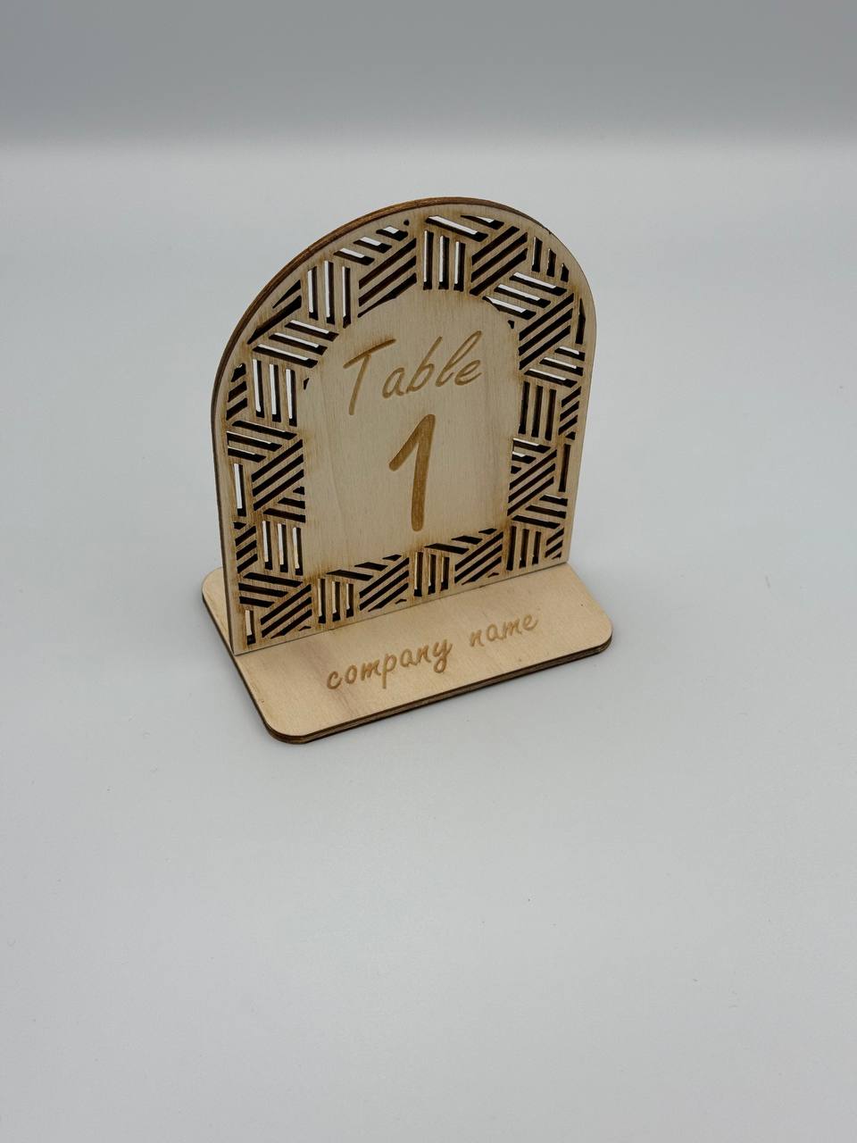 Dai un tocco di stile ai tuoi eventi con questo segnatavolo in legno realizzato artigianalmente al laser. Perfetto per matrimoni, ristoranti, eventi aziendali o cerimonie, è caratterizzato da un design moderno con motivo geometrico traforato e incisione personalizzabile.